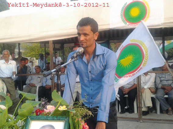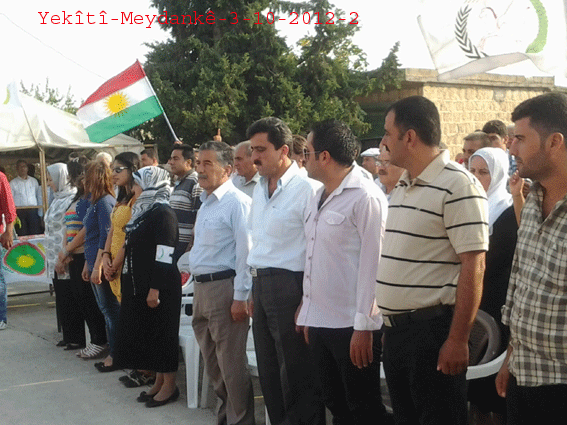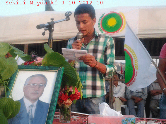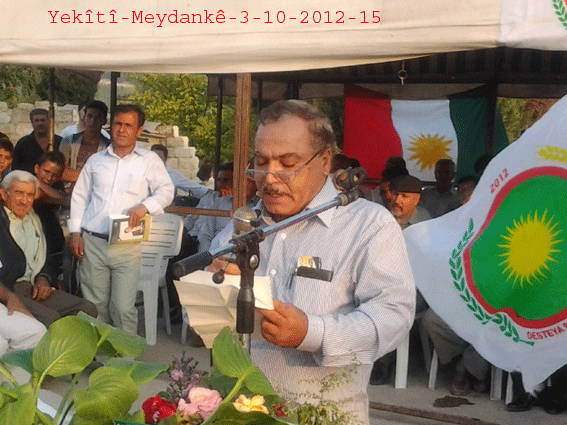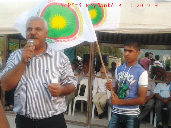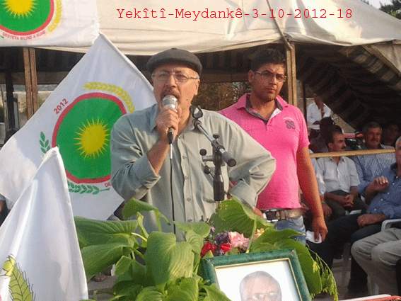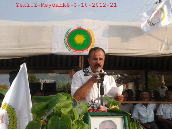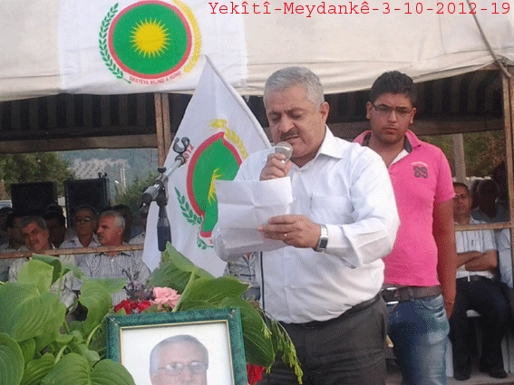 ثم ألقى الأستاذ جمال كلمةً باسم حزب الاتحاد الديمقراطي PYD ، بارك فيها بداية افتتاح مركز الحزب متمنياً له النجاح والتوفيق في النضال السياسي ، وأكد على ضرورة تعاون جميع الأحزاب في إنجاح الهيئة الكردية العليا وتنفيذ قراراتها ، خاصةً في هذه المرحلة الاستثنائية ، وعلى تنظيم المجتمع الكردي على أساس الادارة الذاتية .