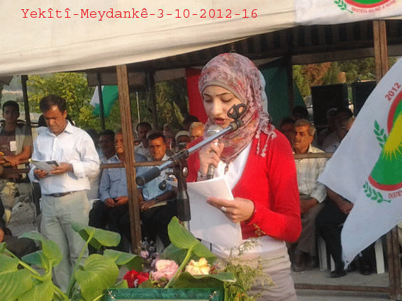 وألقت الآنسة بيريفان إيبو كلمة جمعية روشن بدرخان للمرأة الكردية ، مباركةً حزب الوحـدة على افتتاح مراكزها وضرورة توسع نشاطاتها وتعليم اللغة الكردية ، حيث يمرّ سوريا بظروف صعبة وهناك حمل ثقيل على شعبنا وعلى الجميع التعاون فيما بينها .