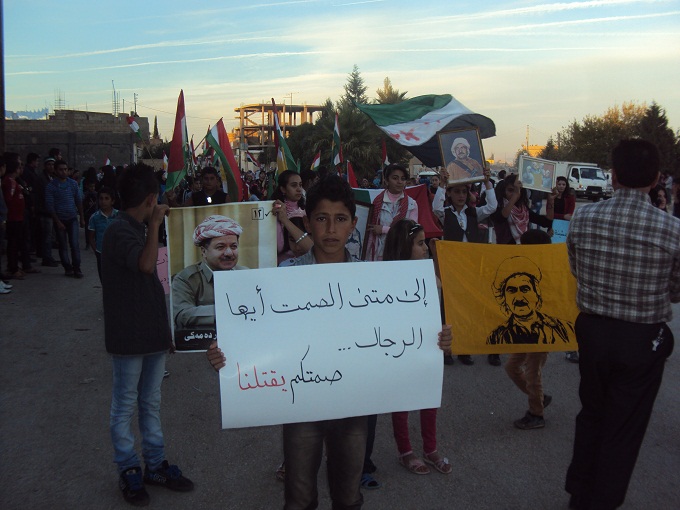 بدعوة من منظمة المرأة للحزب الديمقراطي الكردي في سوريا ( البارتي ) , خرجت مساء اليوم مظاهرة نسوية حاشدة و بمشاركة أعضاء المنظمة وتنسيقية كجا كورد في ديرك والاتحاد النسائي الكردي في سوريا ويتقدمهن حرم الأستاذ بهذاد دورسن الآنسة نجاح ميرزا وأفراد عائلتهم ,