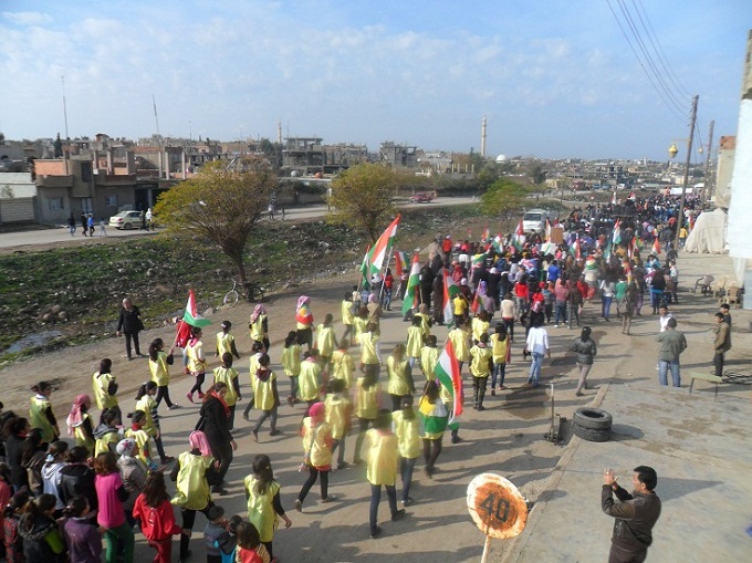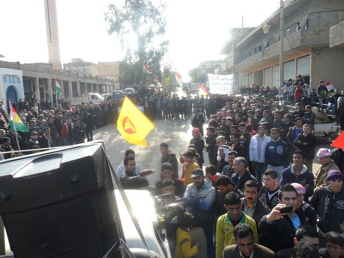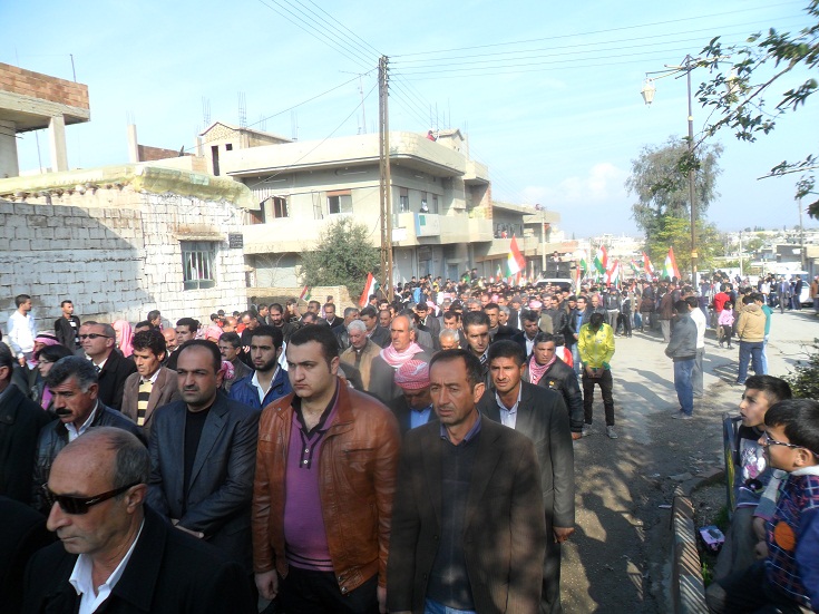 بدعوة من المجلس المحلي في ديرك للمجلس الوطني الكردي , تجمع الآلاف من أبناء الشعب الكردي في المكان المقرر للتجمع.