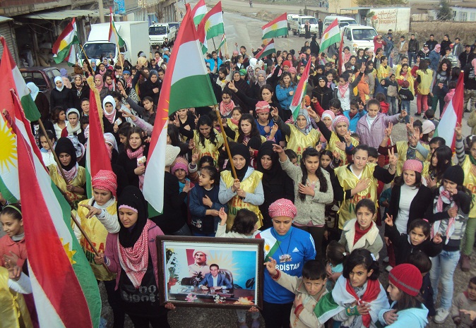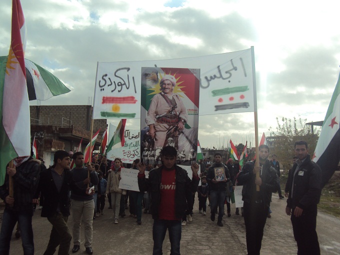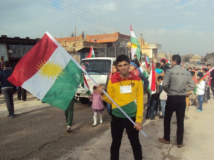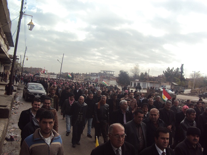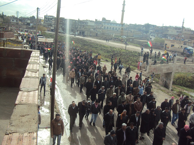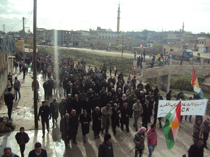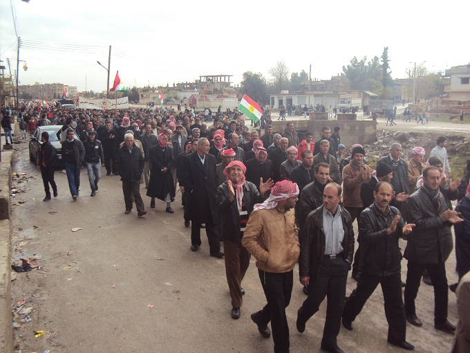 بدعوة من المجلس المحلي في ديرك للمجلس الوطني الكردي , تجمع الآلاف من جماهير مدينة ديرك أمام ساحة جامع الشيخ معصوم الدير شوي.