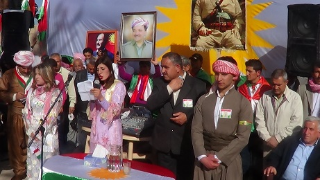 و قد رفعت الاعلام الكردية و صور البارزاني الخالد و الشعارات الممجدة له كما القيت الكثير من الاغاني و القصائد الكردية الحماسية و القيت بعض الكلمات منها :