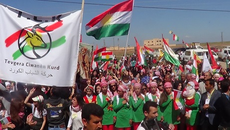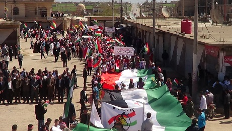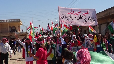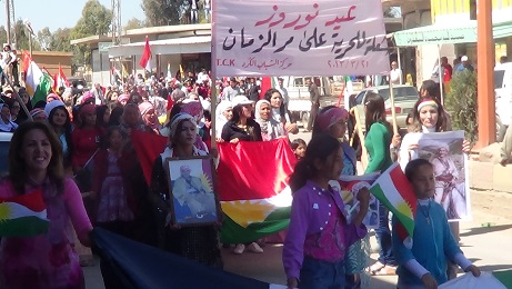 و قد انتهت التظاهرة بالنشيد القومي الكردي ثم أكمل الكثير من المتظاهرين احتفالهم بالعيد في قرية آلاقوس