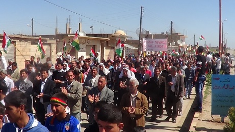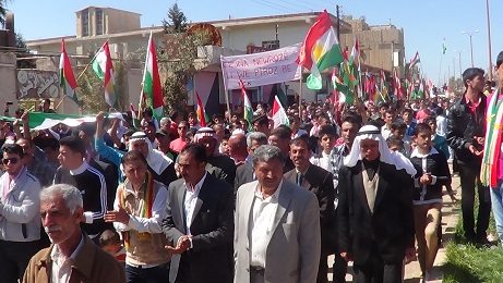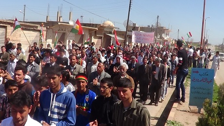 حيث احتشدت الجموع بداية في ساحة الشهيد نصر الدين برهك ثم جابت الشارع العام في البلدة رافعة الأعلام و الشعارات الكردية و علم الاستقلال مع الشعارات و الاغاني الحماسية التي تدعو الى الوحدة و الحقوق الكردية و اسقاط النظام و آلته القمعية ..