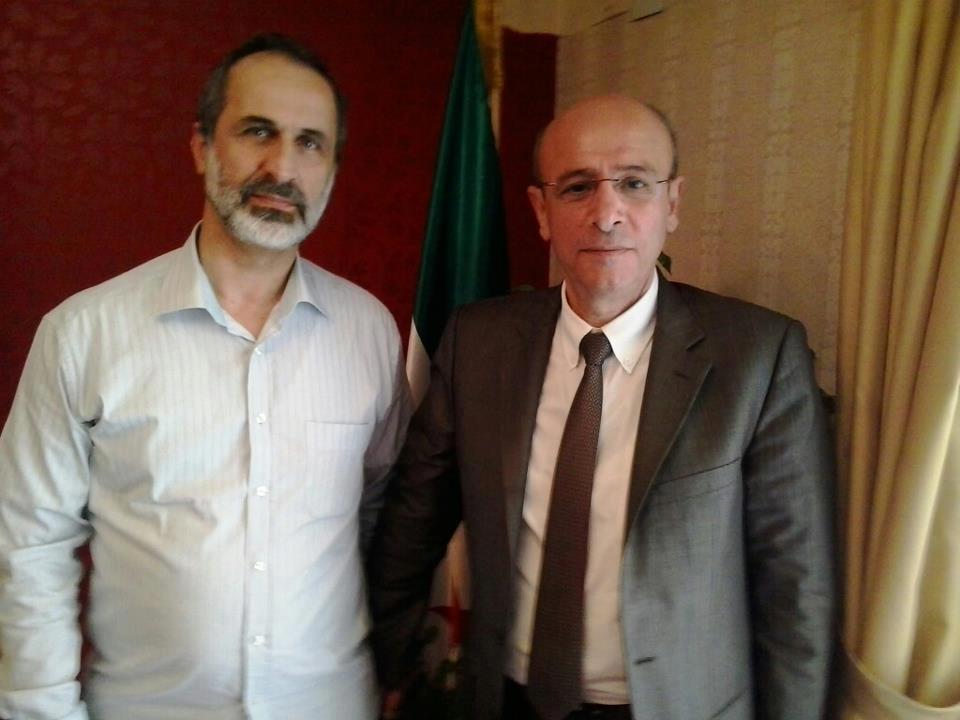 لقاء رئيس الكتلة الوطنية الجامعة الأستاذ ماجد حمدون برئيس الإئتلاف لقوى الثورة والمعارضة الشيخ معاذ الخطيب