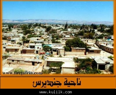 جنديرس مركز لناحية مهمة تتبعها ( 33 قرية ) و( 29 ) مزرعة ، بمساحة (325.10) كم2. تحدها النواحي التالية: شيخ الحديد ومعبطلي من الشمال ، عفرين من الشرق ، منطقة جبل سمعان ومحافظة إدلب من الجنوب ، ولواء إسكندرونة من الغرب . تربط جنديرس بمدينة عفرين طريق معبدة بطول 20 كم .